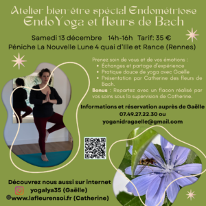 Vous souffrez d’endométriose, offrez vous une parenthèse de bien être avec l’atelier bien-être Endoyoga et fleurs de Bach… … Lire la suite